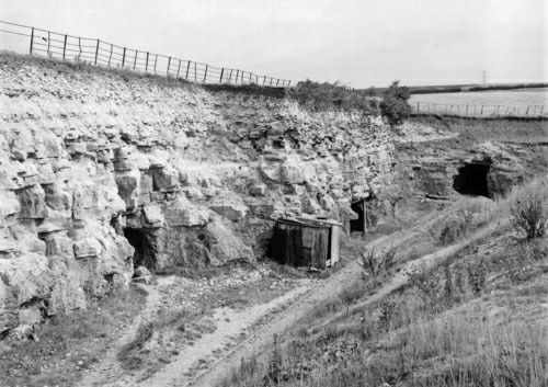 Looking N. Lincolnshire Limestone overlying Northampton Ironstone, Greetwell. The view shows disused adits of Long Harry Mine.