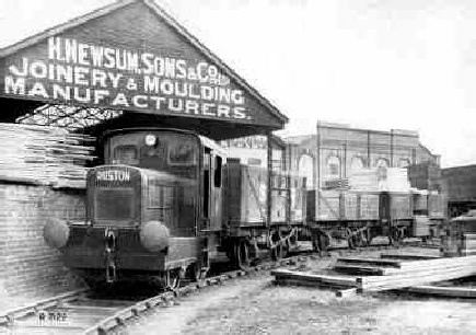 Three other industrial lines could be found on the Fosse bank; only one was narrow gauge, but the standard gauge lines will also be described. A large employer in the area was 'H Newsum & Sons', a 'constructional joiner', whose works occupied the site used in more recent times by AEI (or whatever they called themselves in various rebrandings). 'Newsums'’ were originally timber merchants, established in November 1856, with works in Broadgate, Lincoln. A family business, it prospered, opening a new plant in Pelham Street after the the original works were destroyed by fire in 1879. Expansion included the opening of new works in Gainsborough, Hull & Manchester. Closure dates for these last two are not available, but Gainsborough closed c1962. Lincoln closed c2/1956. (The closure was due to financial difficulties).